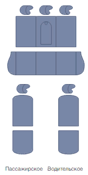 Передняя спинка - 2, передние сиденья - 2, задняя спинка – 1, заднее сиденье - 1, подголовники передние - 2, подголовники задние - 3.